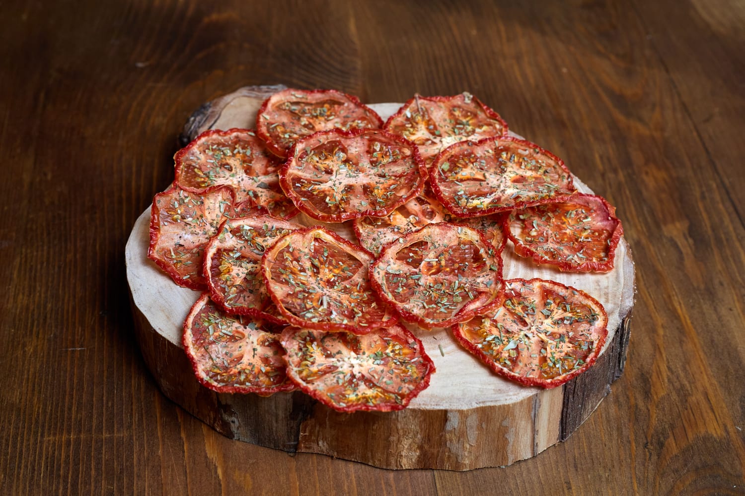 Овощные помидорные чипсы с прованскими травами и розовой солью.